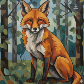 • „Ein Fuchs in Pixeloptik, mit Retro-Farben und seitlicher Perspektive“