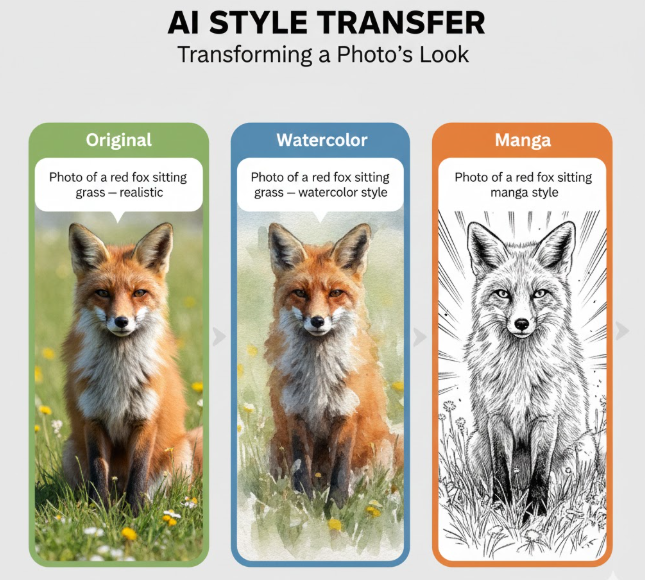 • Stilübertragbar: KI kann reale Fotos in Comic-, Manga- oder Fantasy-Stile umwandeln