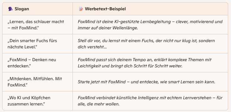 - Logo oder Symbol (Skizze, KI-Vorschlag oder Beschreibung)