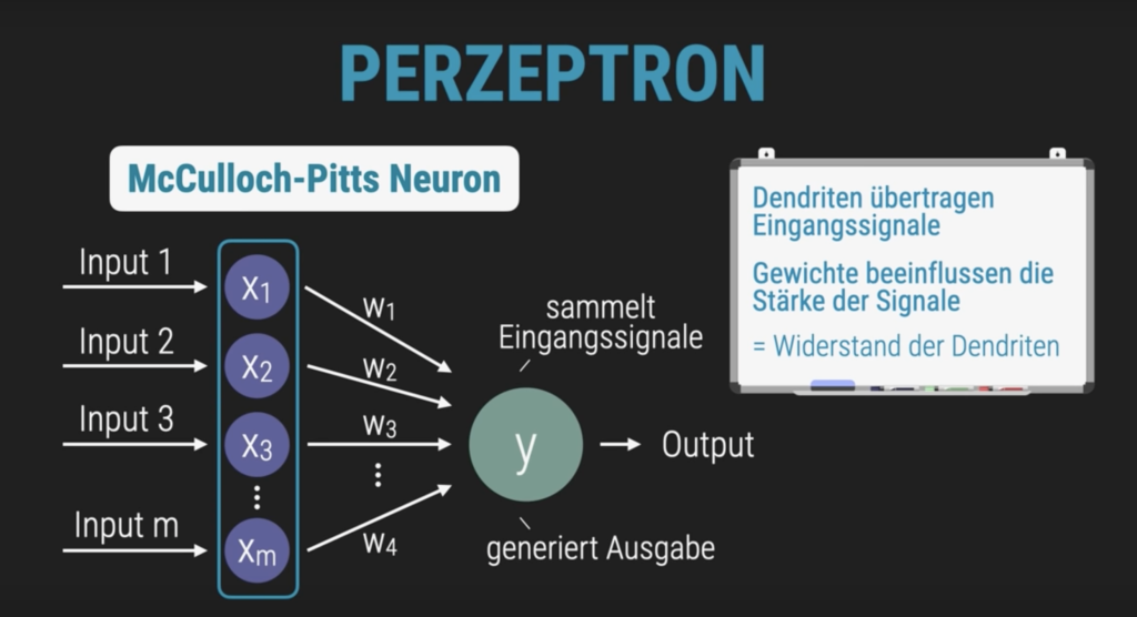 Ein Perzeptron ist ein einfaches Modell eines künstlichen Neurons und gilt als Grundbaustein für viele moderne KI-Systeme. Es basiert auf der mathematischen Nachbildung biologischer Nervenzellen, insbesondere auf dem sogenannten McCulloch-Pitts-Neuron, das bereits 1943 entwickelt wurde.