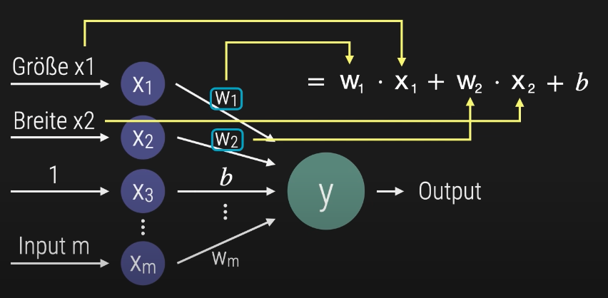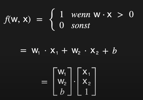 Y = w1⋅x1+w2⋅x2+w3⋅x3 mit x3 = 1 und w3=b