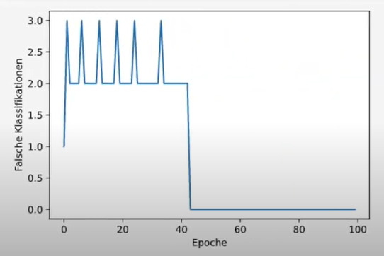 perzeptron = Perzeptron(100) # Neues Perzeptron-Objekt mit 100 Trainingsdurchläufen